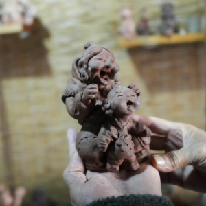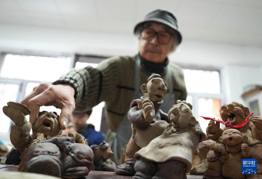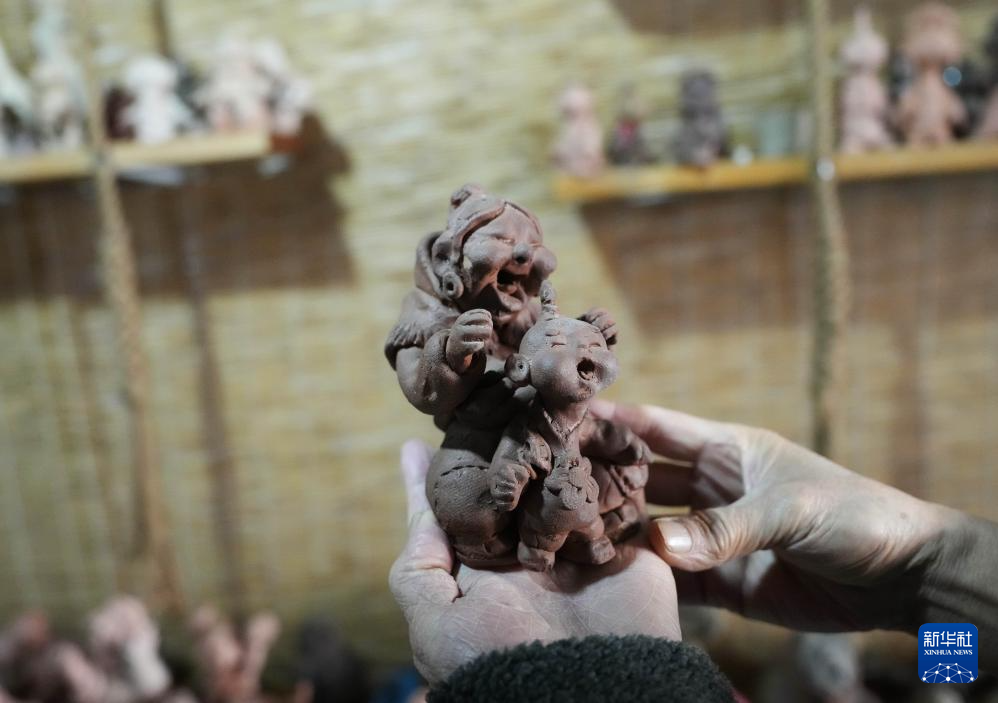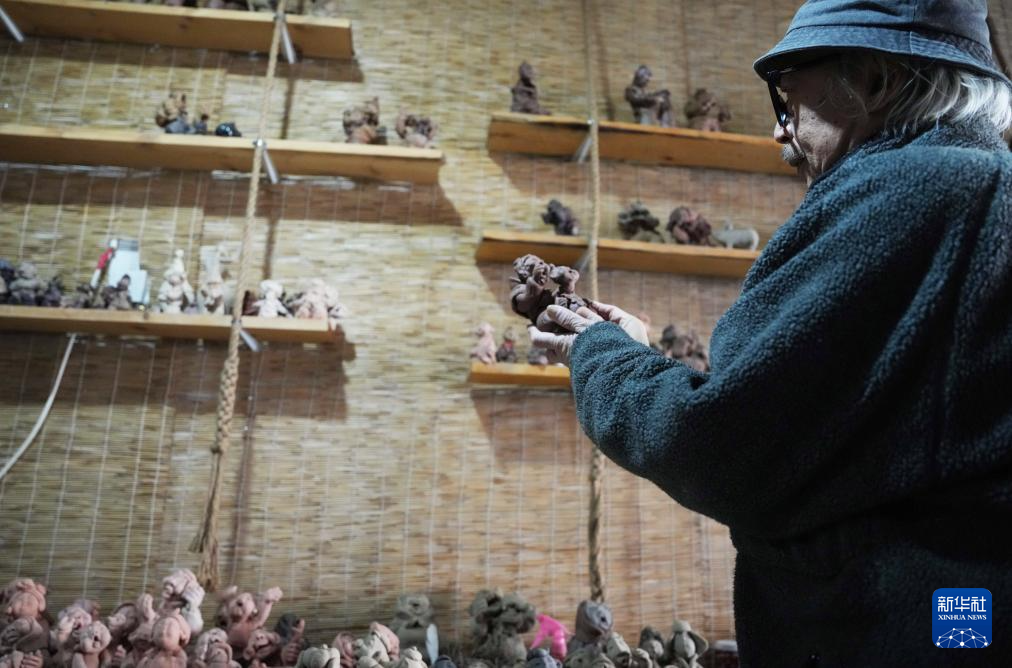 这是3月21日在王辰工作室拍摄的泥人作品。