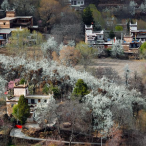这是3月23日在丹巴县甲居藏寨拍摄的梨花掩映中的藏族民居。