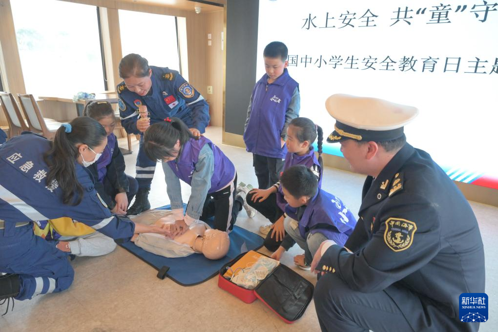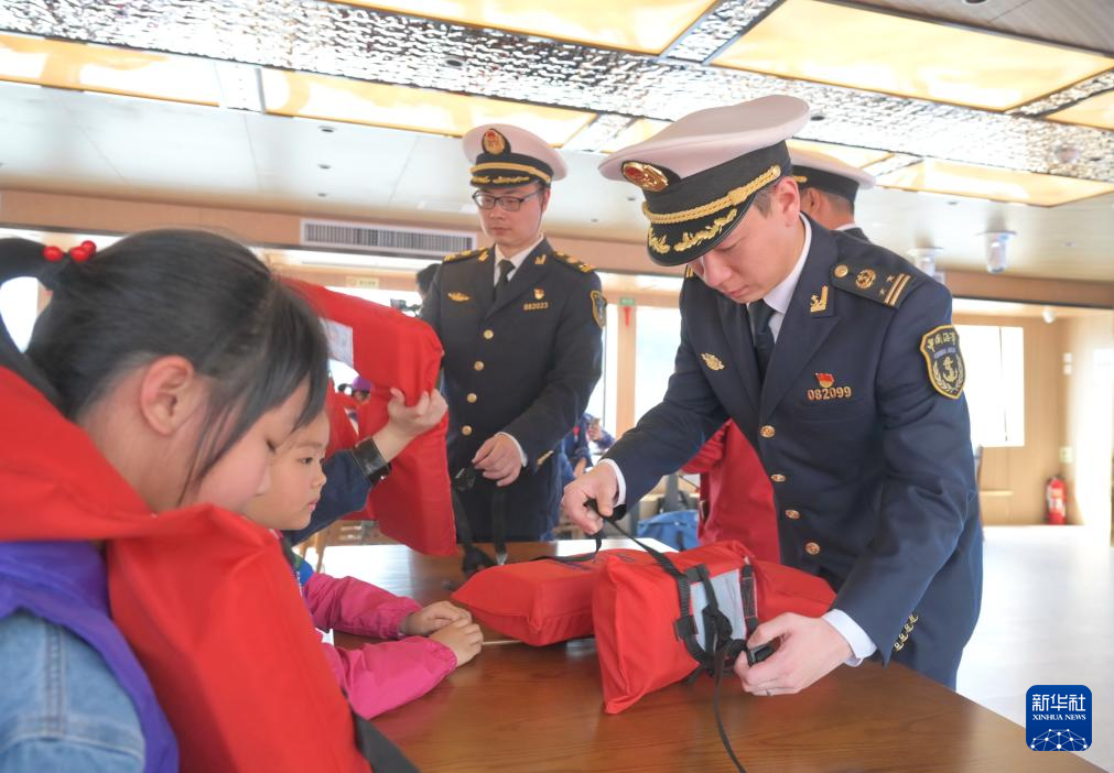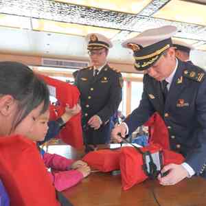 当日,为迎接第29个全国中小学生安全教育日,增强学生对水上交通安全的认识,福建海事等单位在码头及客轮上为学生们开展以“水上安全 共‘童’守护”为主题的客船消防应急演练、水上交通安全教育活动。