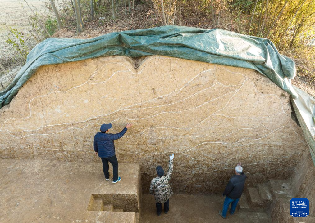 2023年12月4日拍摄的湖北荆门屈家岭遗址一角(无人机照片)。