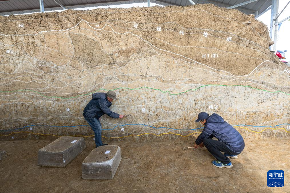 2023年12月4日,考古人员在湖北荆门屈家岭遗址F38现场进行考古工作。