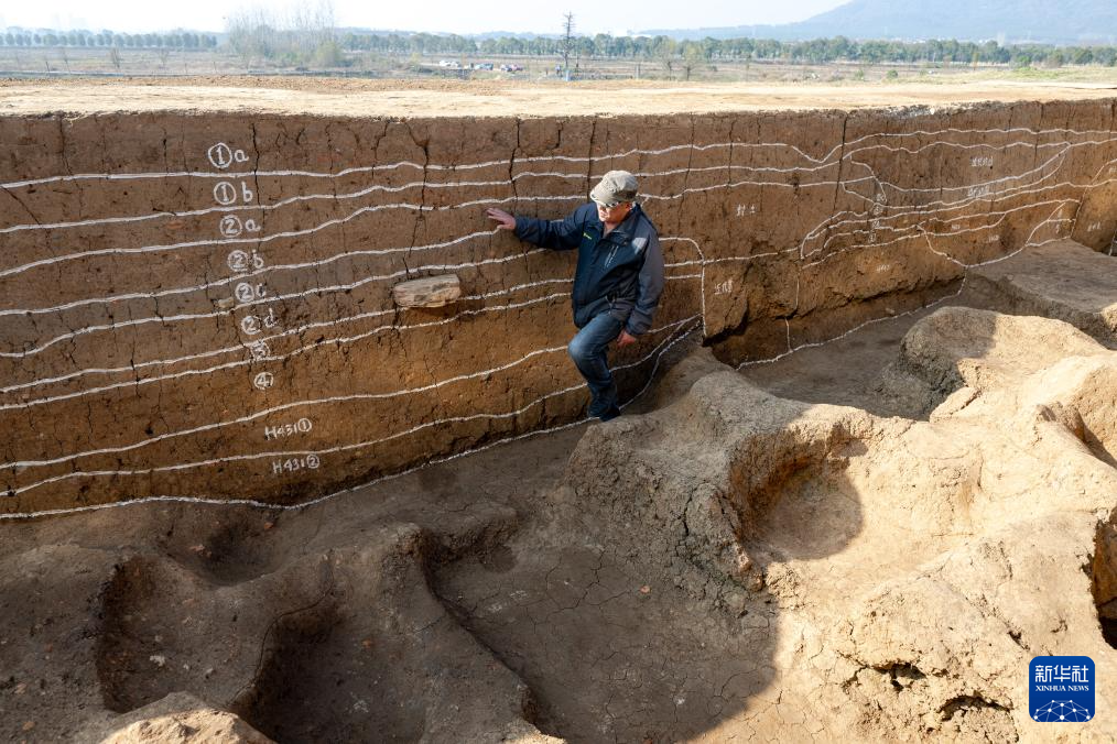 2023年12月4日拍摄的湖北荆门屈家岭遗址F38发现的磉墩。
