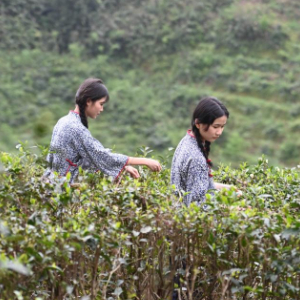 3月25日,在梧州市苍梧县六堡镇合口茶园,茶农们在采茶。