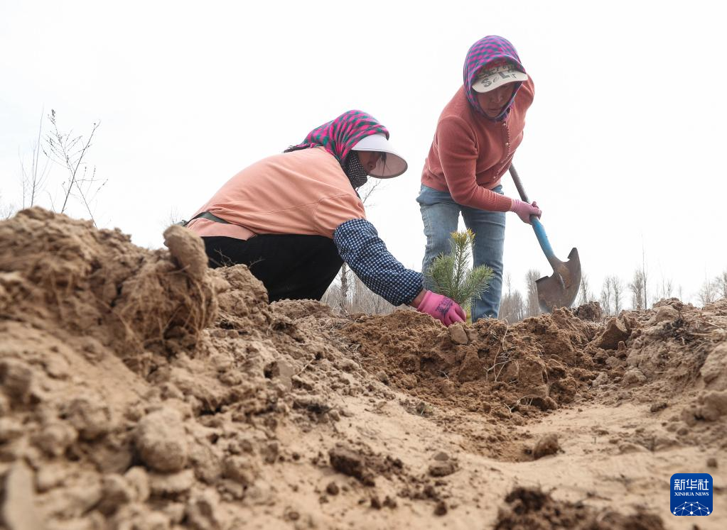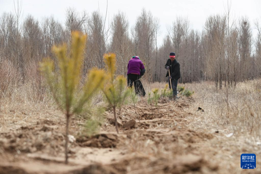 3月25日,辽宁省阜新市彰武县大德镇黄花村村民在植树。