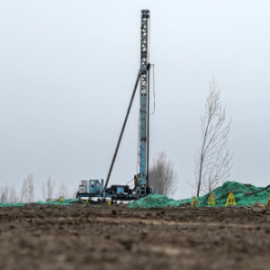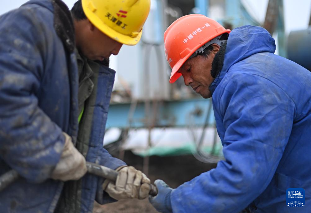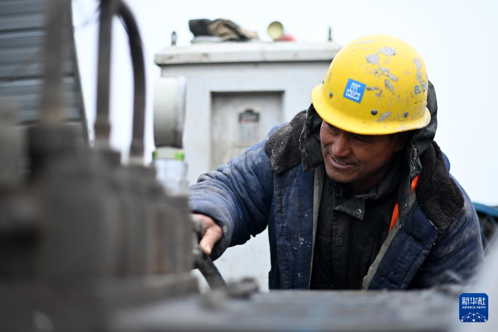 3月25日,施工人员在查看高压旋喷桩机压力表。
