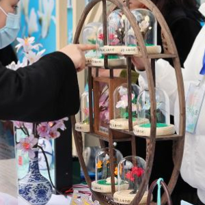 3月26日,市民在白玉兰文创市集了解白玉兰系列文创产品。