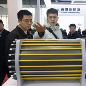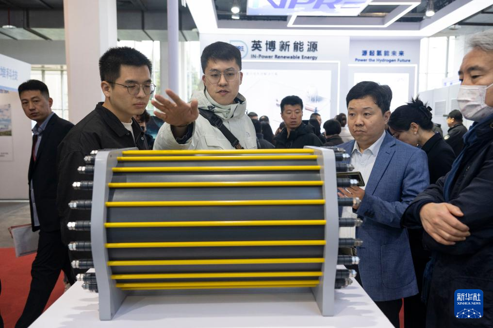 3月26日,在北京举行的2024中国国际清洁能源博览会上,观众观看明阳氢能水电解制氢成套设备。