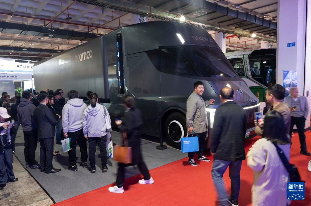 3月26日,在北京举行的2024中国国际清洁能源博览会上,观众与宏景智驾展示的“智能氢卡”合影。