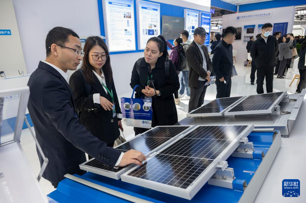3月26日,在北京举行的2024中国国际清洁能源博览会上,中建二局安装公司工作人员介绍建筑一体化光伏系统。