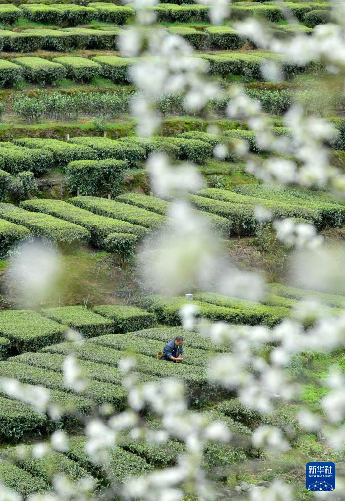 3月26日,茶农在贵州省铜仁市松桃苗族自治县普觉镇的茶园里采茶。