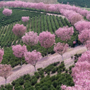 春日时节,位于江苏溧阳的十思园生态茶园樱花绽放。