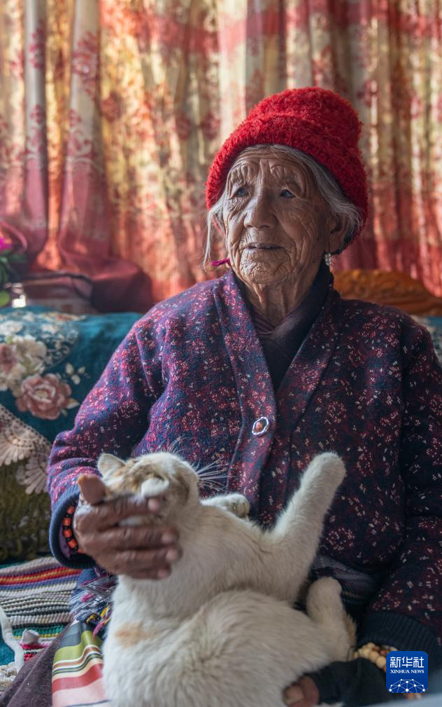 1959年西藏民主改革后,格桑曲珍迎来新生。她和丈夫先后育有4个孩子,如今,格桑曲珍与孙子和孙媳妇一起生活,孙子外出务工,孙媳妇在家照看老人。他们一家住在一栋二层藏式楼房里,生活得非常幸福。