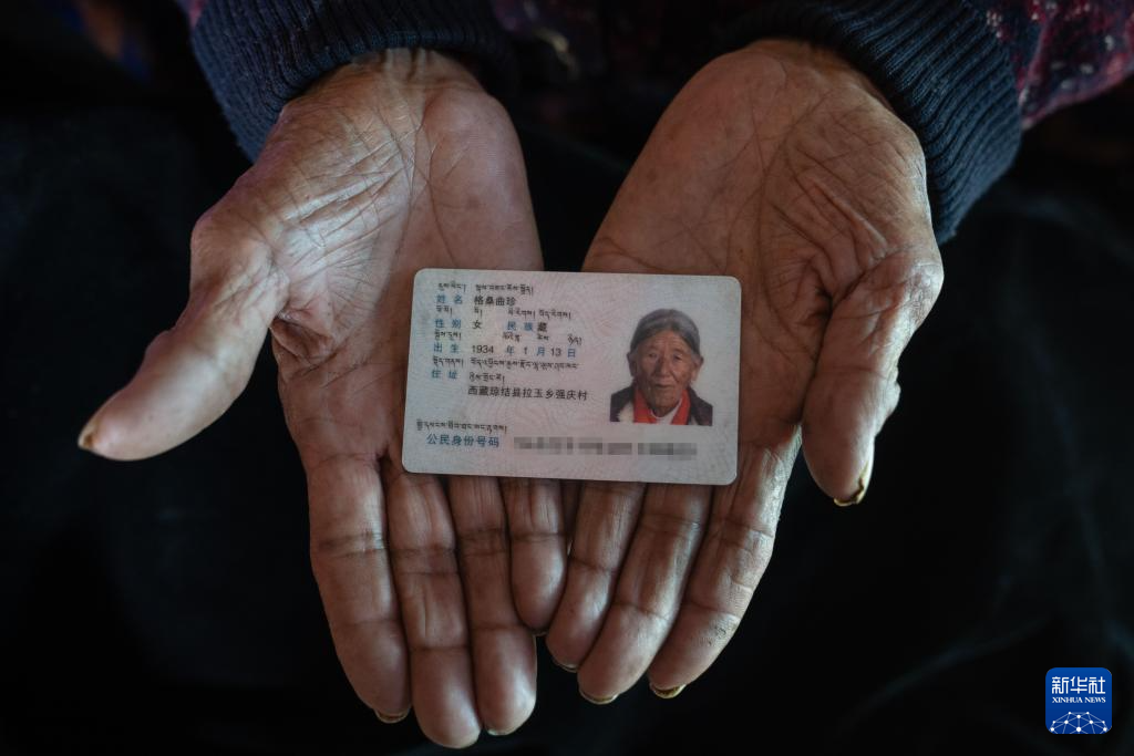 格桑曲珍展示自己的身份证(3月16日摄)。