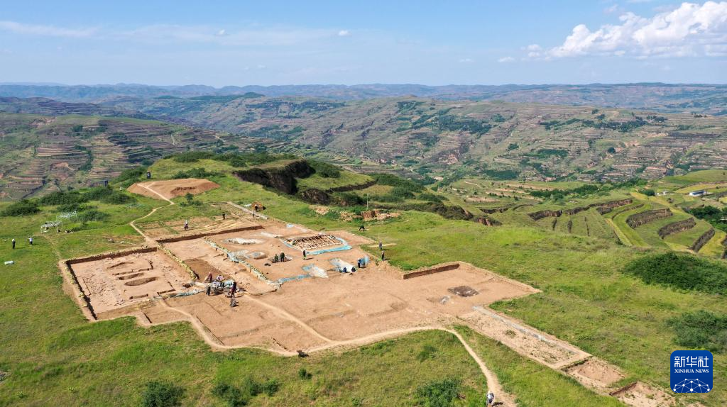 这是2022年6月10日拍摄的甘肃省陇南市礼县四角坪遗址考古发掘现场(无人机照片)。