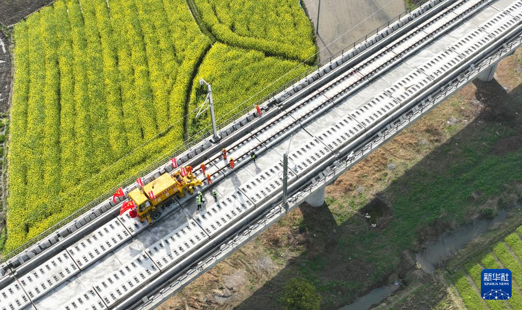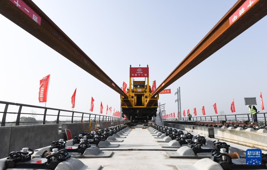 当日,随着首对500米长钢轨平稳铺设在无砟道床上,荆荆高铁(荆门至荆州高速铁路)全线正式进入无砟轨道铺设阶段。