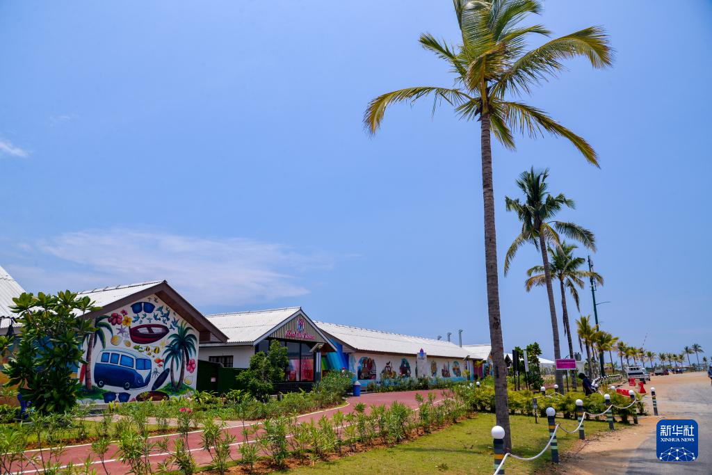 这是3月27日拍摄的斯里兰卡科伦坡港口城的沙滩美食广场。
