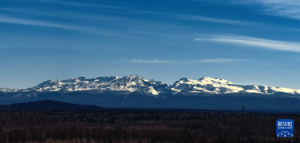 这是2023年2月8日拍摄的蓝天白云下的长白山(无人机照片)。