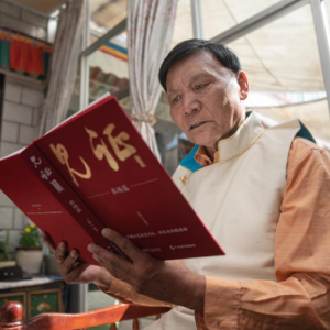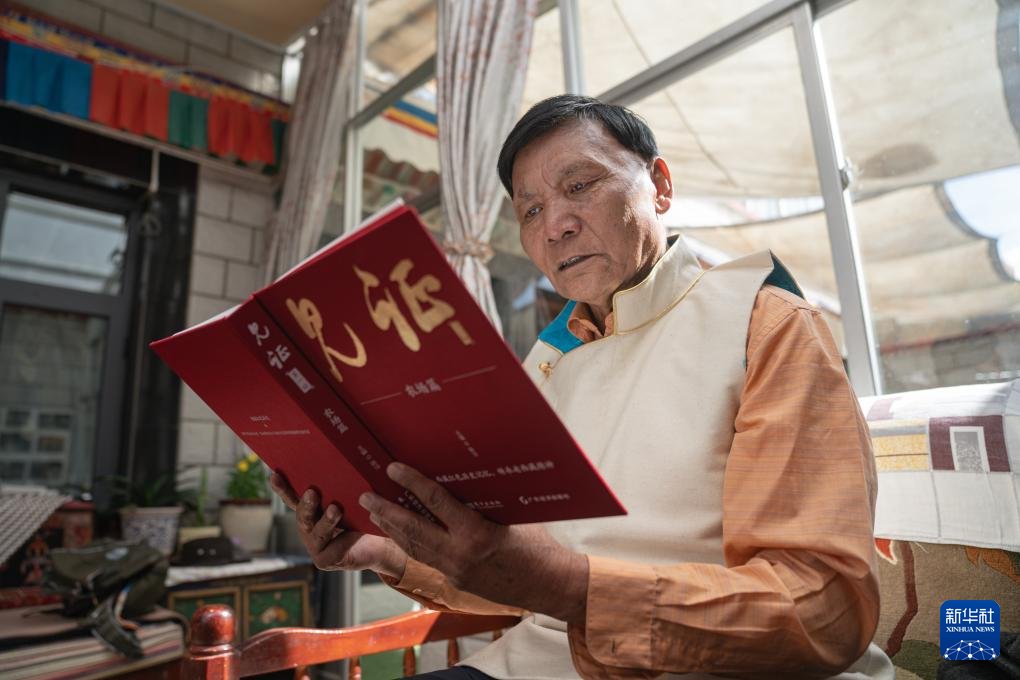 2024年3月28日 普次仁在家里看书(3月23日摄)。