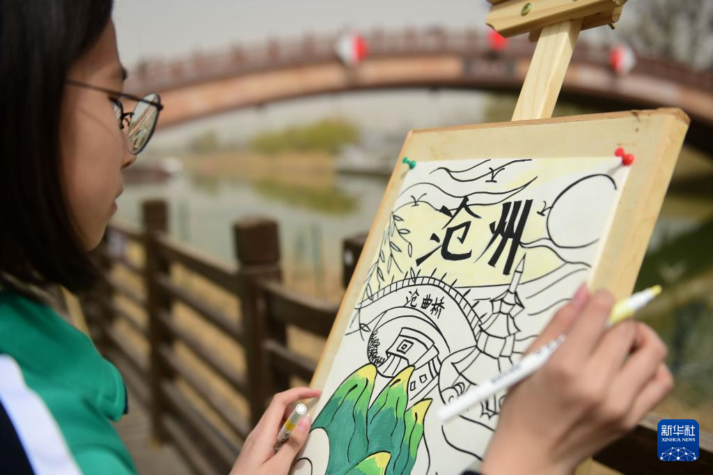当日,由河北沧州百狮园公园、沧州中西医结合医院南川老街国医堂主办的“春到运河美,传统文化润童心”公益研学活动在古运河畔举办,孩子们通过各种方式了解运河历史,感知传统文化魅力。