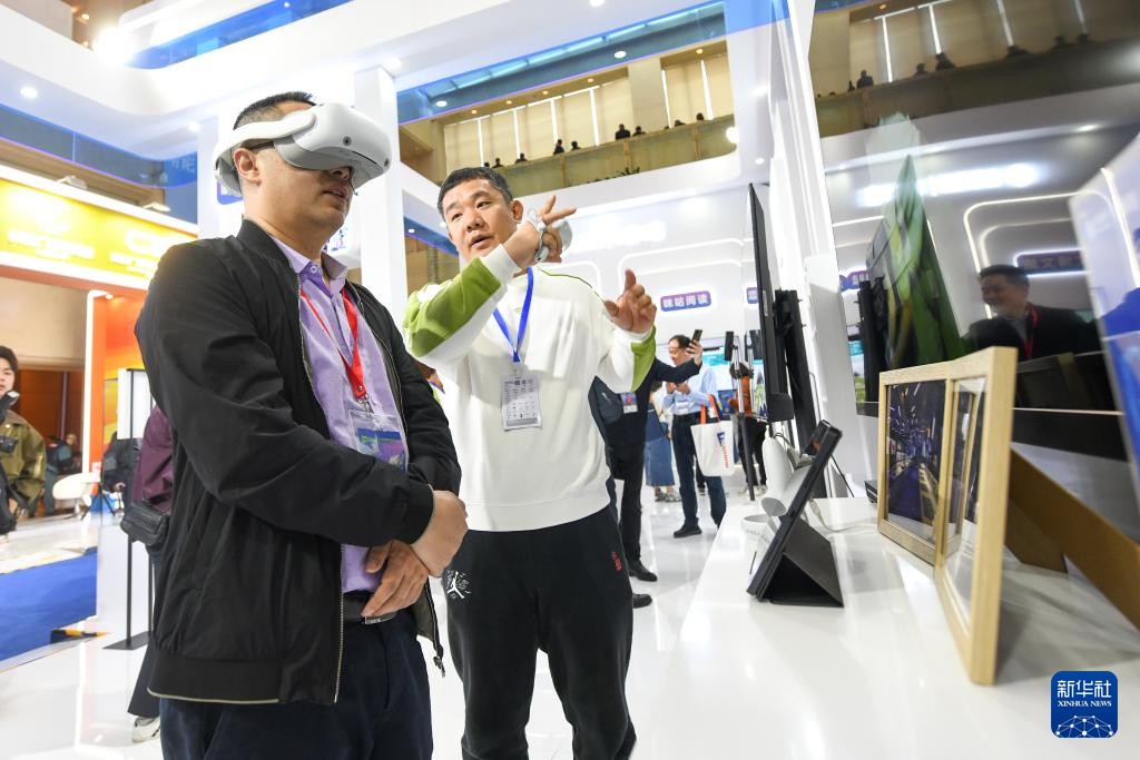 3月28日,人们在第十一届中国网络视听大会“新技术与精品节目展”展厅参观。