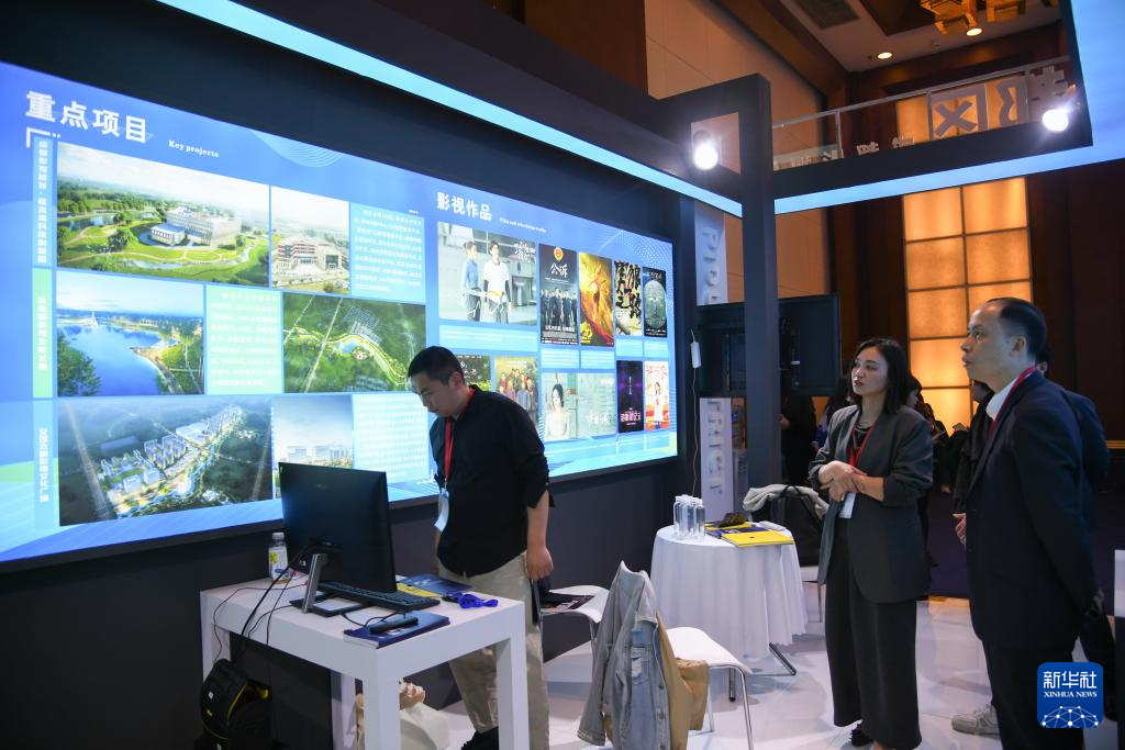 3月28日,在第十一届中国网络视听大会“新技术与精品节目展”上,参展商成都影视城向嘉宾介绍该项目特点。