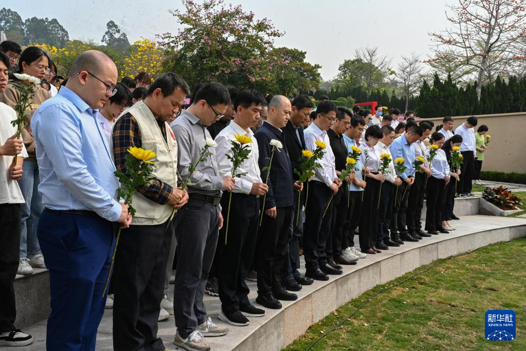 3月29日,在海沧文圃山厦门市遗体和器官捐献者纪念园,现场全体人员肃立默哀。