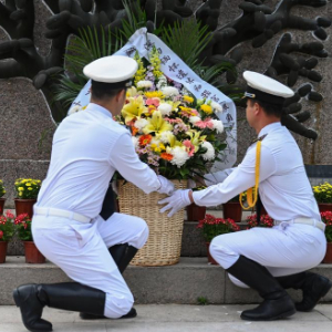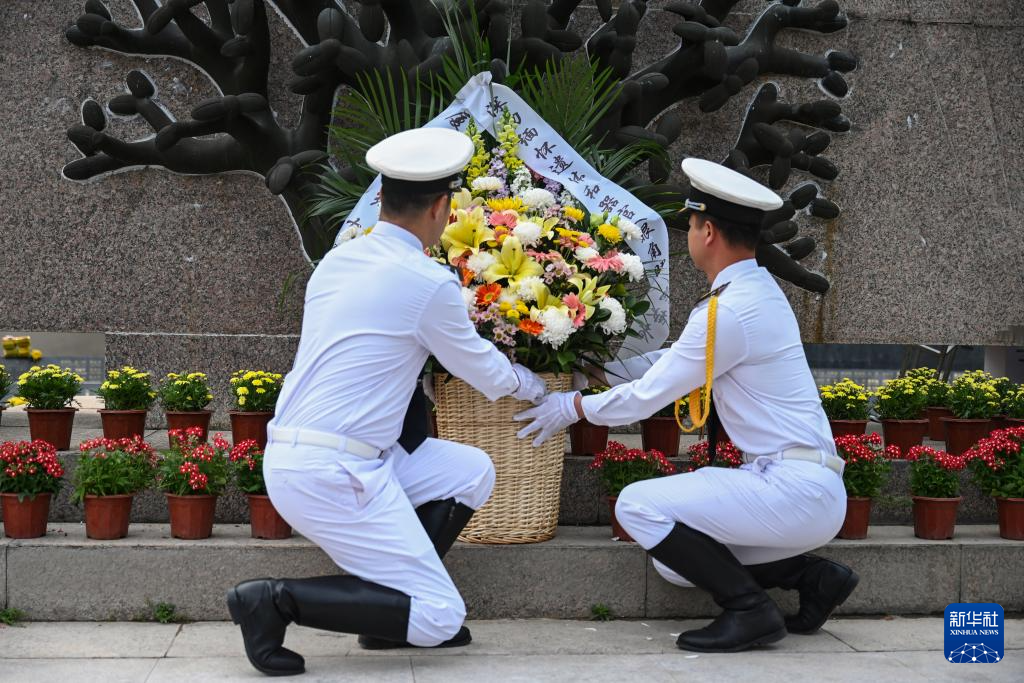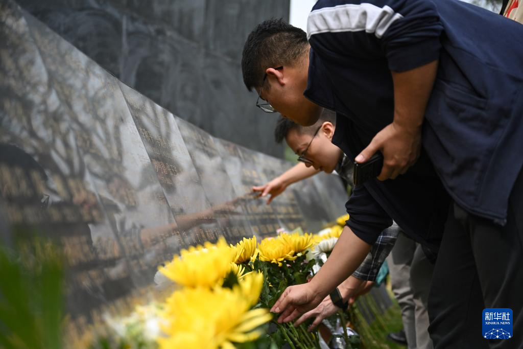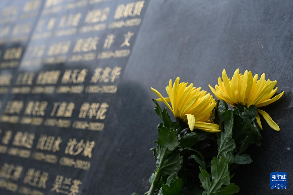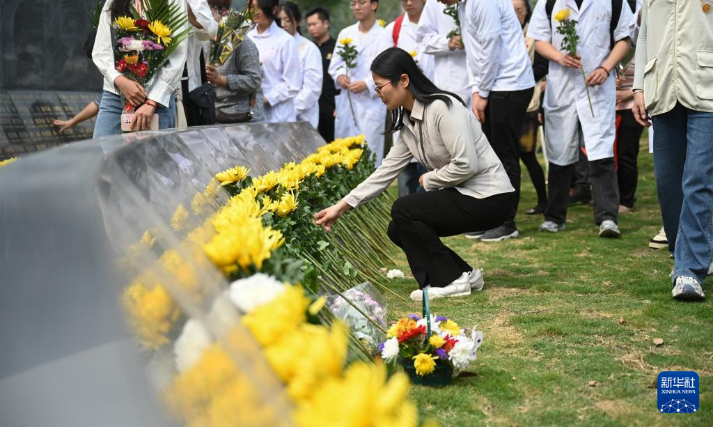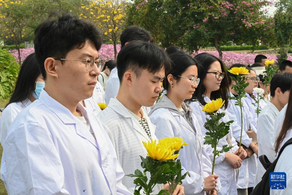 3月29日,在海沧文圃山厦门市遗体和器官捐献者纪念园,医学专业院校学生代表手捧鲜花缅怀逝者。