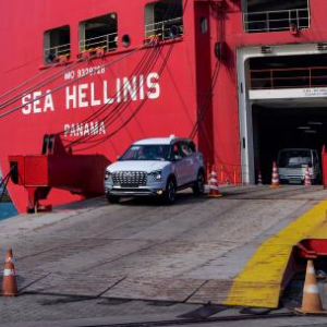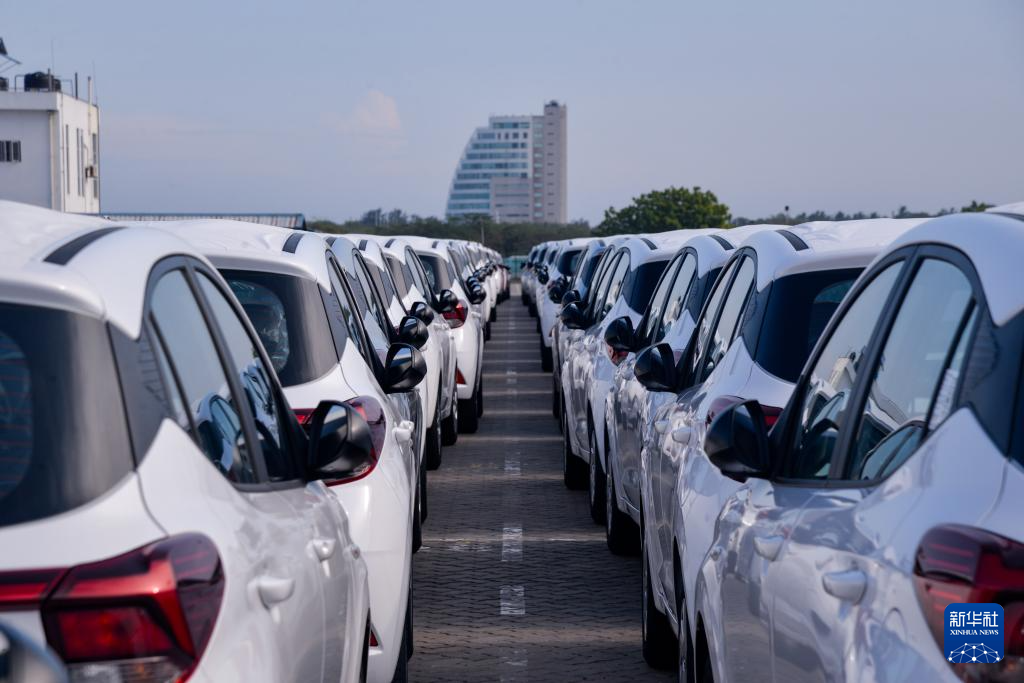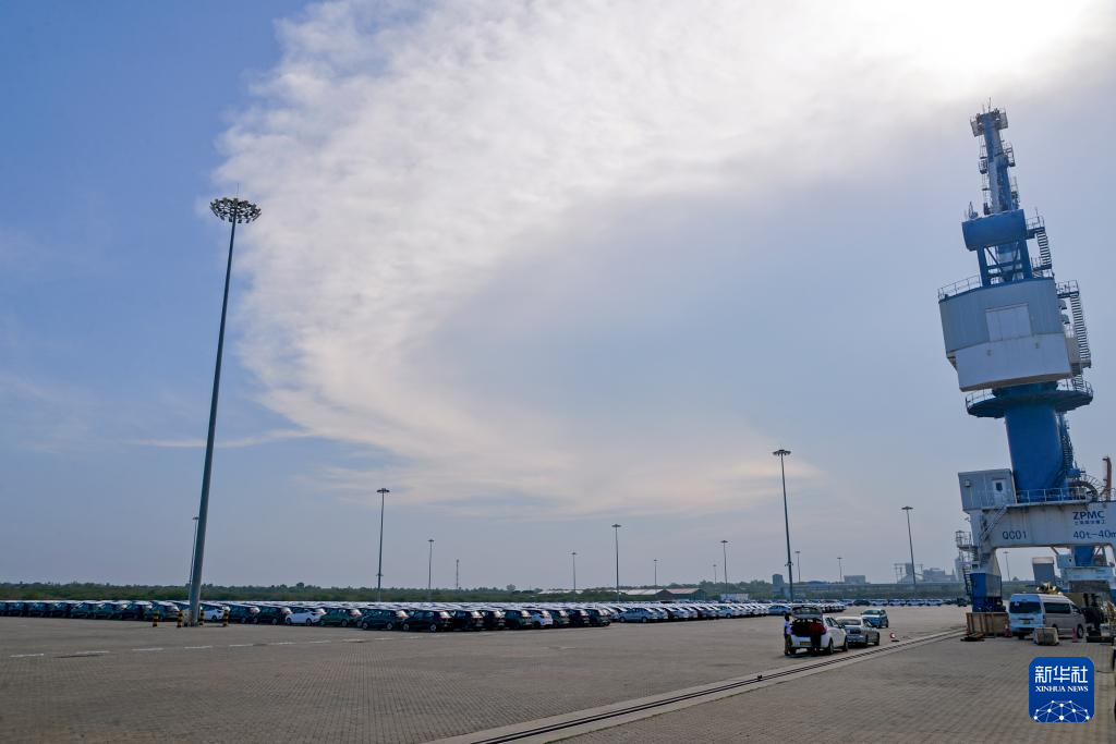 3月28日,在斯里兰卡汉班托塔港,滚装船卸运汽车。