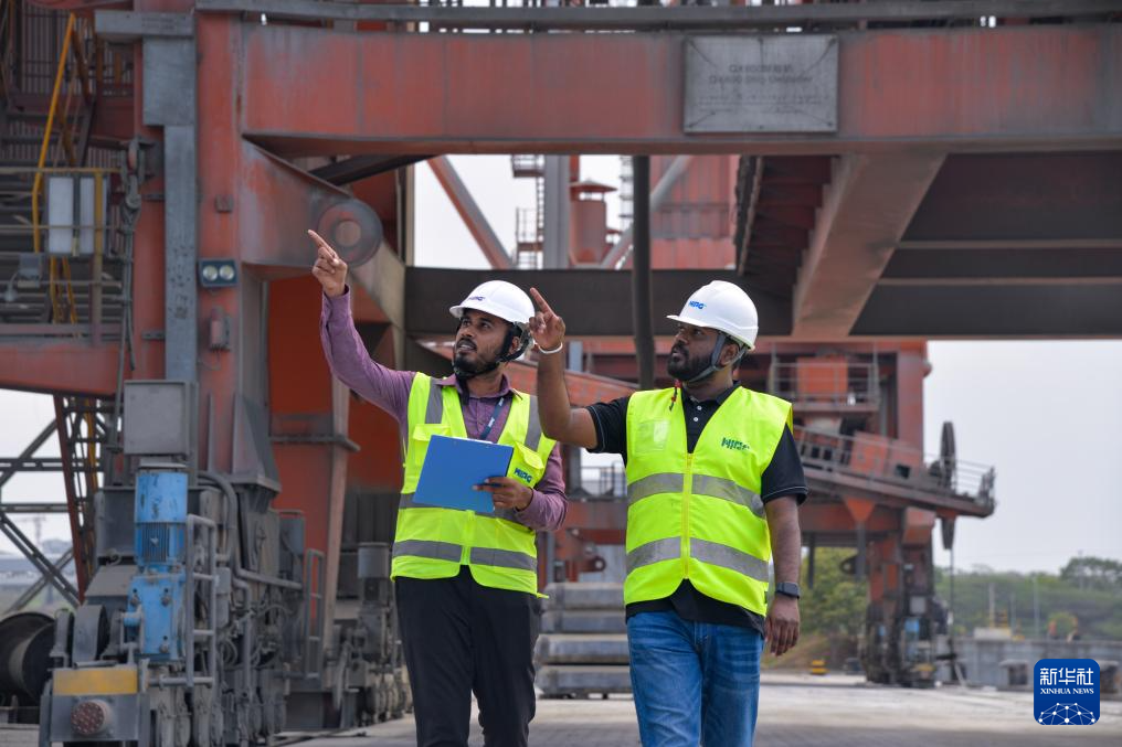 3月28日,工作人员在斯里兰卡汉班托塔港忙碌。