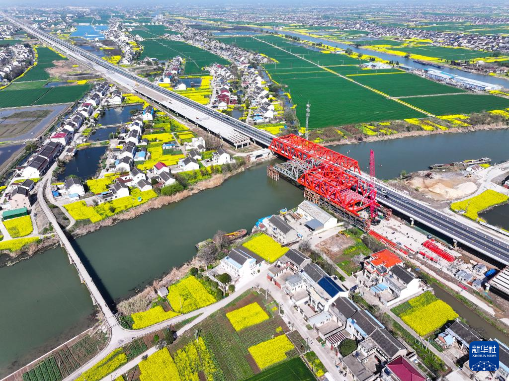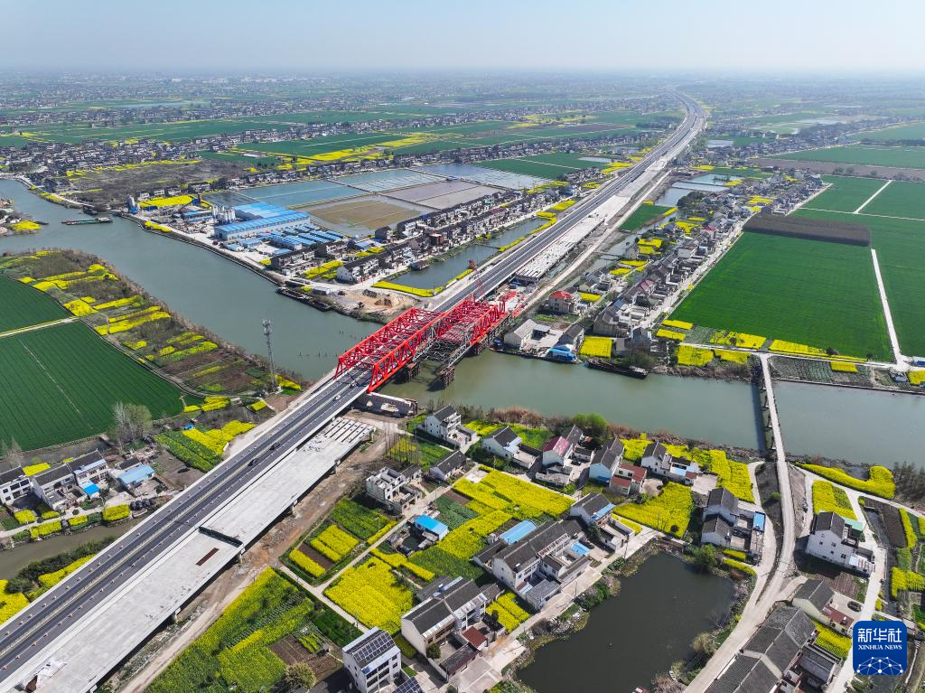 沪陕高速公路平潮至广陵段扩建工程起自江苏南通平潮北枢纽,止于泰州广陵枢纽东侧,全长约48.966公里,计划2024年年底建成。目前,南通段路面基层已全部完成,正在有序推进沥青面层施工;泰州段正在稳步开展桥梁工程、主桥钢桁梁拼装等作业。