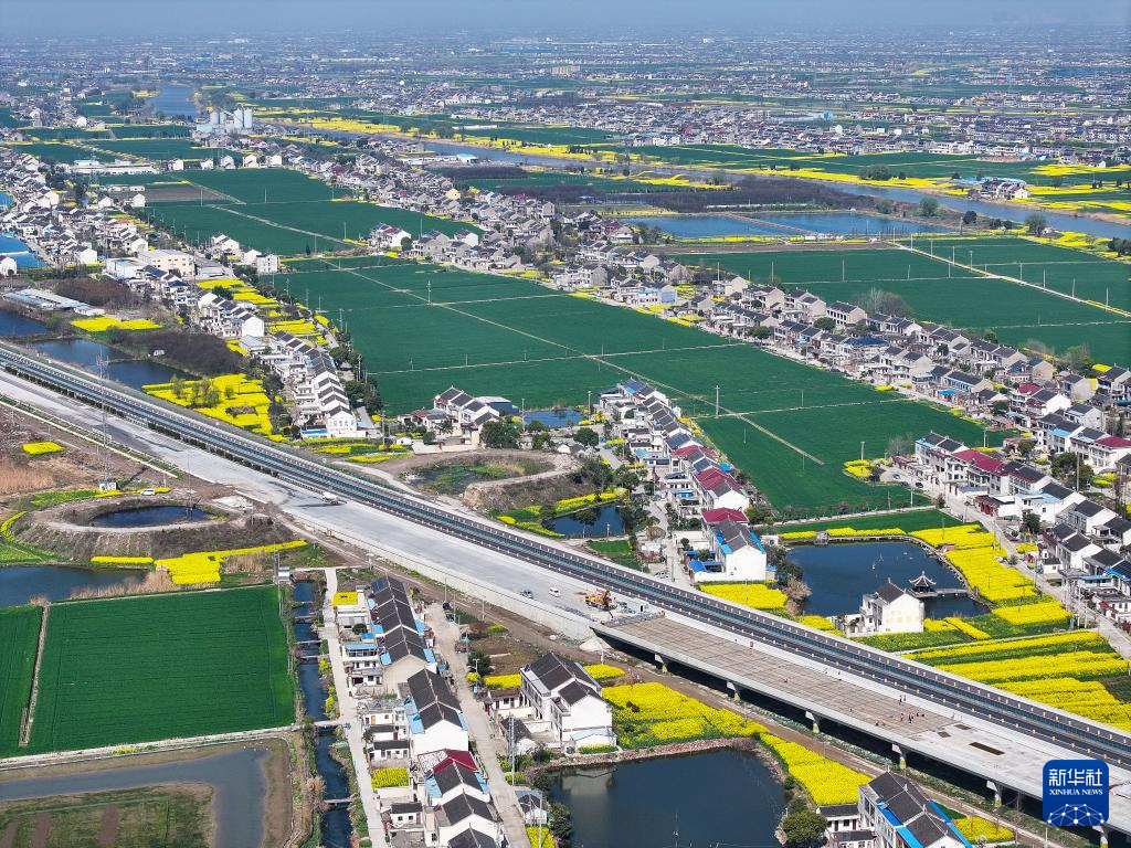 这是3月28日拍摄的沪陕高速公路平潮至广陵段扩建工程施工现场(无人机照片)。