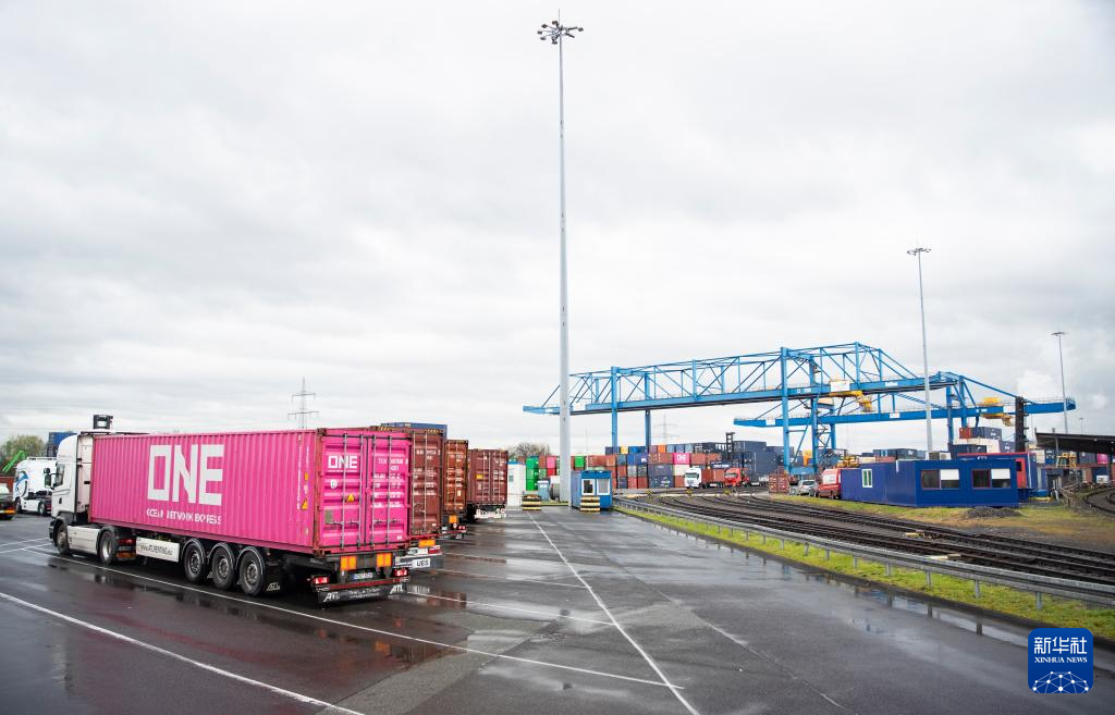 这是3月28日在德国杜伊斯堡一处货运场站拍摄的集装箱。