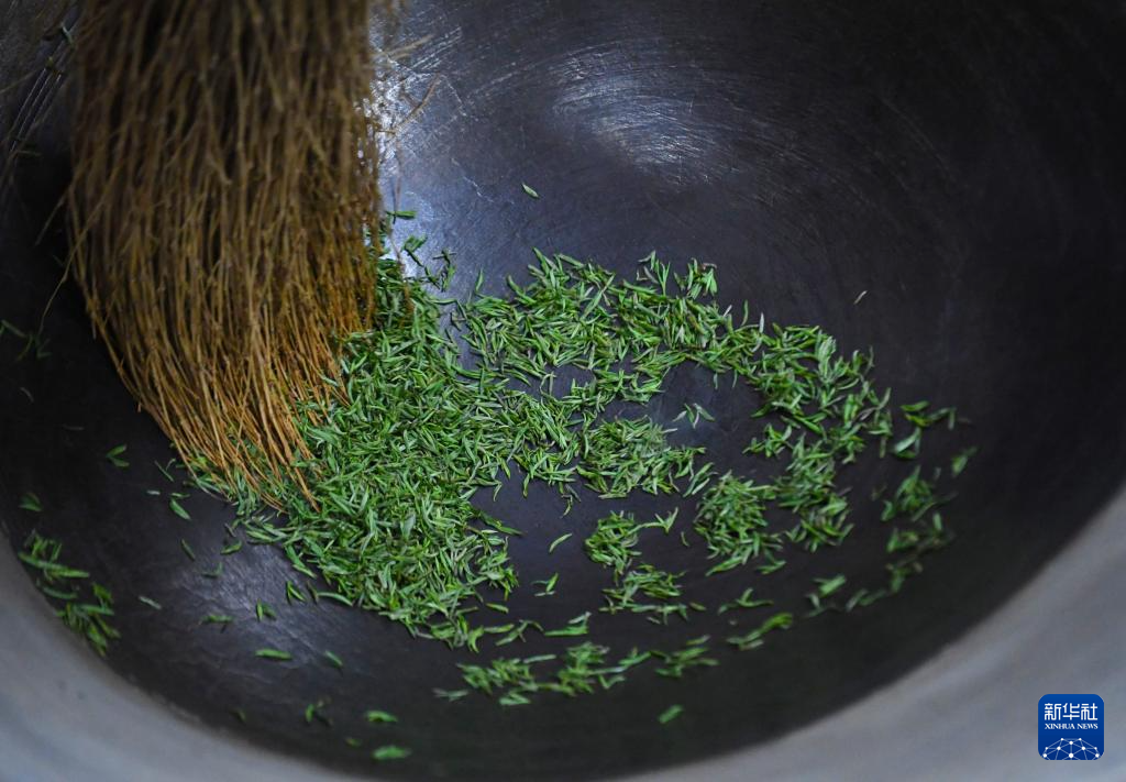3月26日,在河南省信阳市浉河区土门村,肖珺景在炒茶。