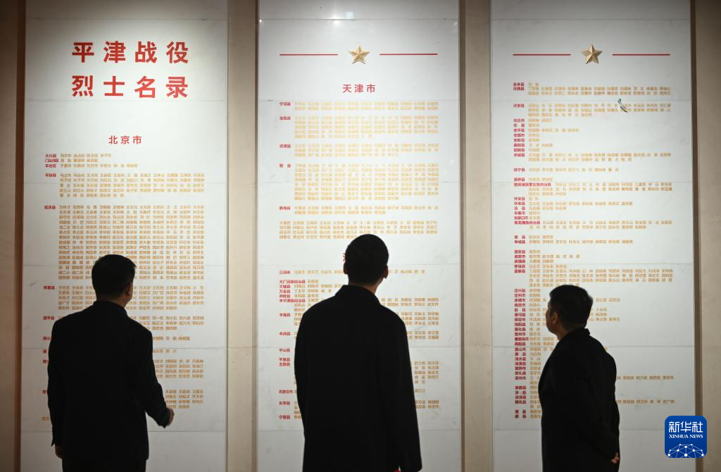 3月29日,参观者在平津战役纪念馆参观烈士墙。