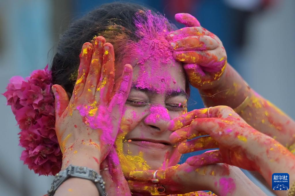 洒红节也叫胡里节,人们在节日期间互相涂抹颜料,迎接春天的到来。