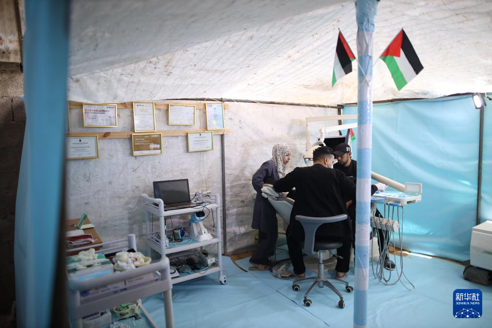 这家用帐篷搭建的临时诊所位于加沙地带中部的努赛赖特难民营,医生克服缺水、缺电等困难,尽可能为人们提供医疗救助。