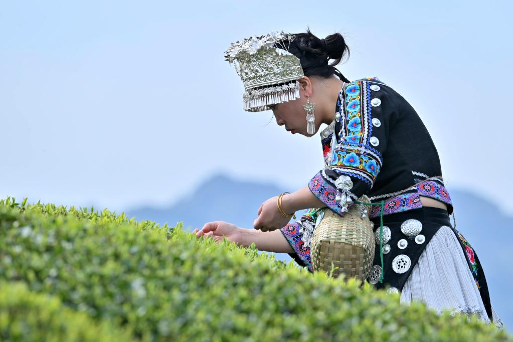当日,湖北省宣恩县在伍家台贡茶文化旅游区的有机茶园里举办采茶大赛,吸引茶农和游客参与其中。伍家台贡茶文化旅游区是开放式的国家4A级旅游景区,产出的伍家台贡茶是国家地理标志产品。每到春茶开采季,当地组织采茶、制茶、茶园山歌等文旅活动,让人们感受贡茶文化的魅力。