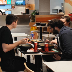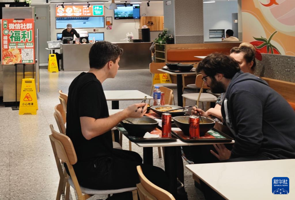 3月23日,在一内地麻辣烫品牌位于香港中环的门店内,几名外国顾客在用餐。