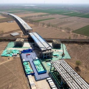 当日,在位于河北省衡水市武邑县西桑村附近的邯郸至黄骅港高速公路衡水段项目工地,上跨邯黄铁路分离式立交桥历时70分钟完成70度转体。