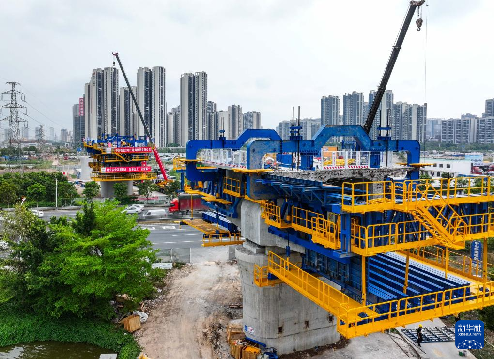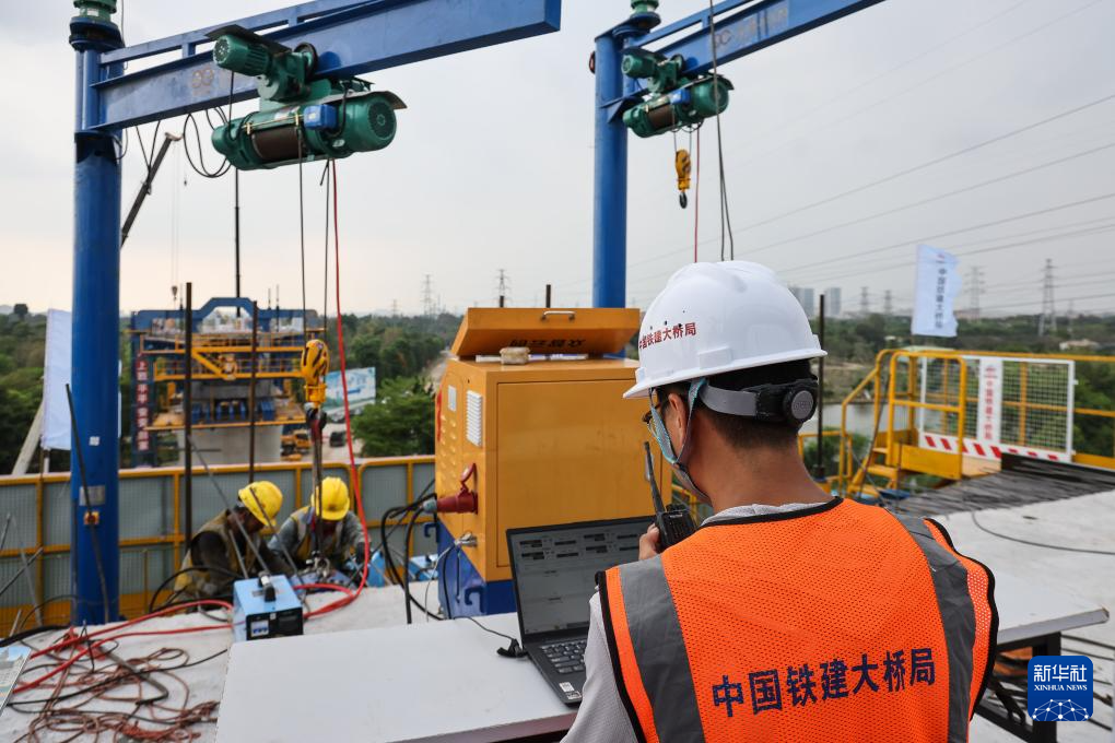 当日,中铁建大桥局运用全线首台多功能悬臂智慧造桥机,浇筑完成深江铁路跨105国道沙溪特大桥首节连续梁。对比传统挂篮悬壁浇筑施工,智慧造桥机有效降低高空作业的安全风险,并提高拼装效率。