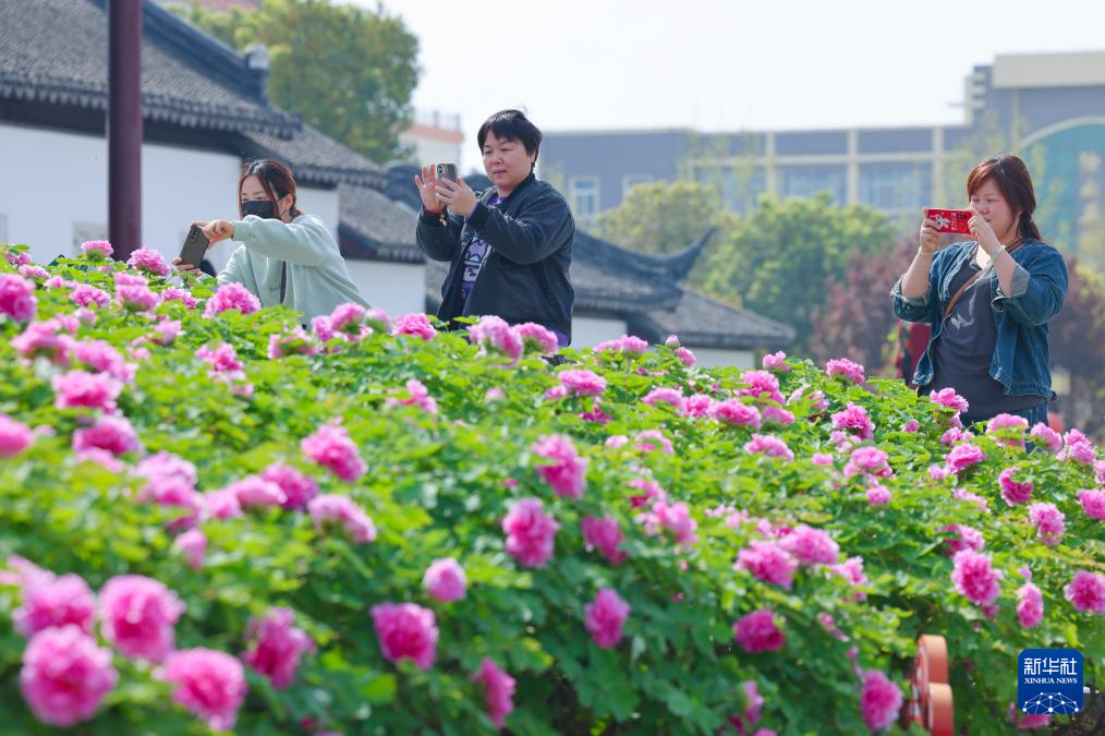 4月1日,在河南省驻马店市汝南县天中山文化园内,游客拍摄牡丹花。