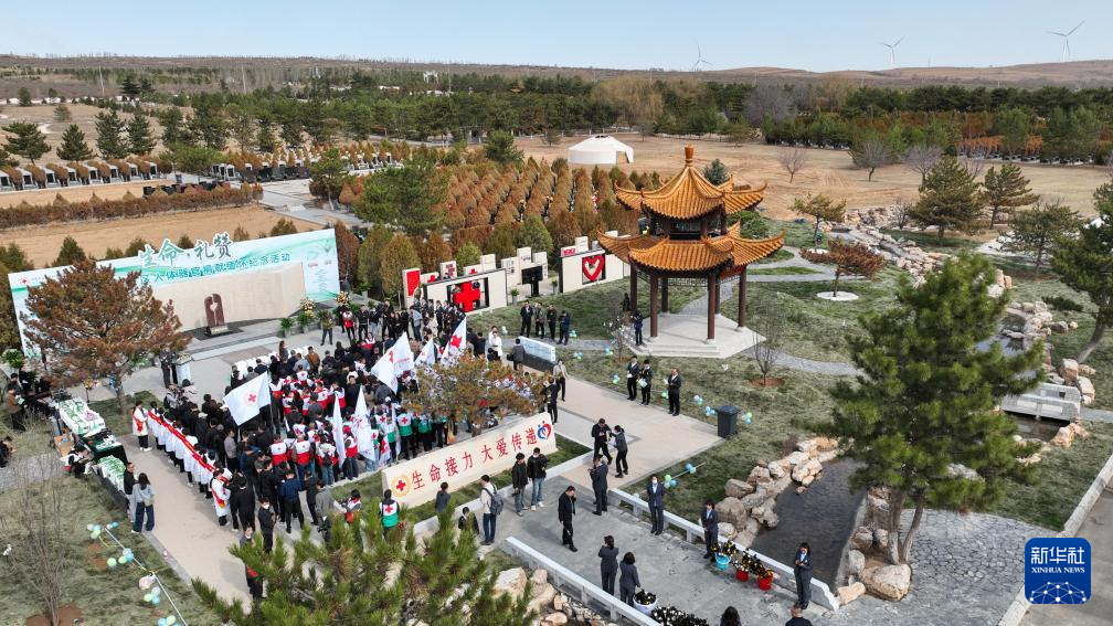 4月2日在内蒙古生命礼赞园拍摄的遗体和人体器官捐献者缅怀纪念活动现场(无人机照片)。