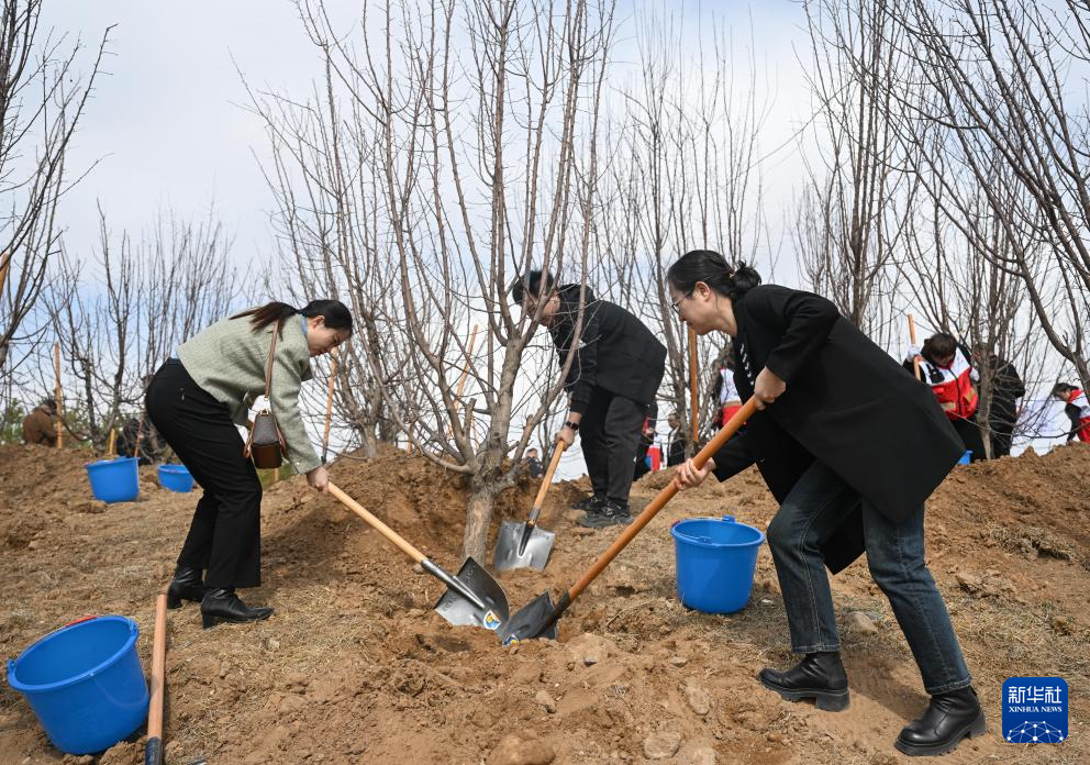 4月2日,人们在内蒙古生命礼赞园植树。