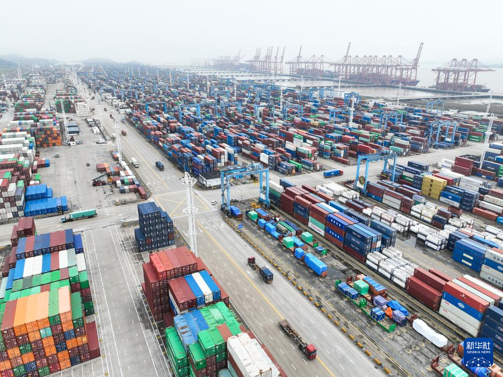 4月2日拍摄的宁波舟山港梅山港区(无人机照片)。