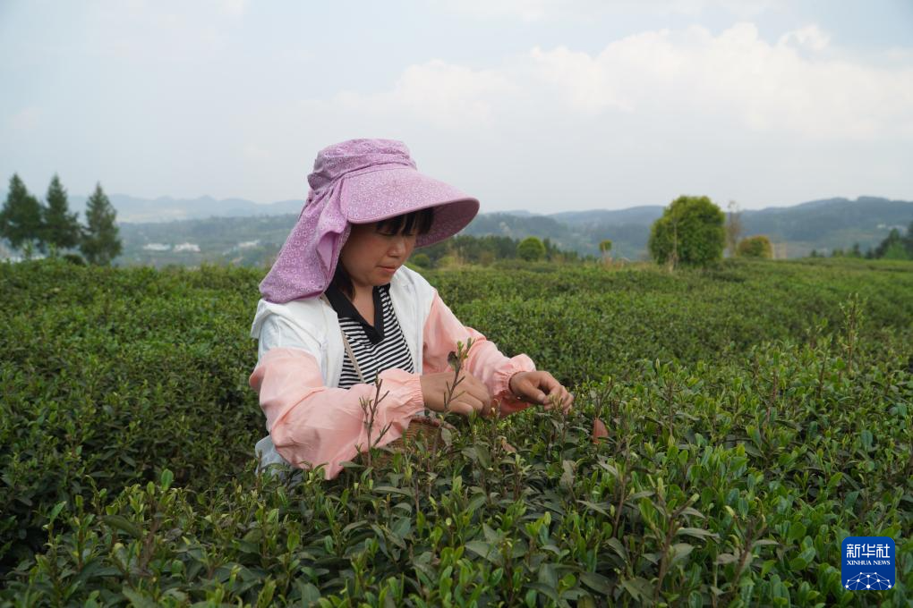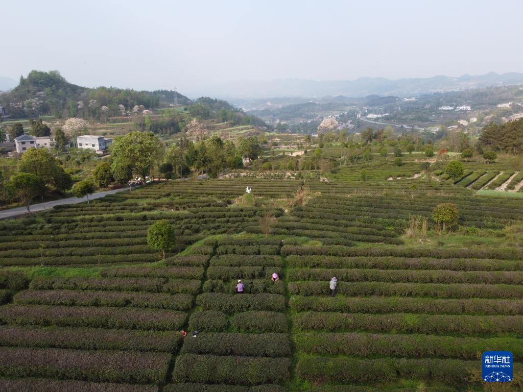 4月2日,茶农在贵州省石阡县龙井仡佬族侗族乡枫香坪村采茶。