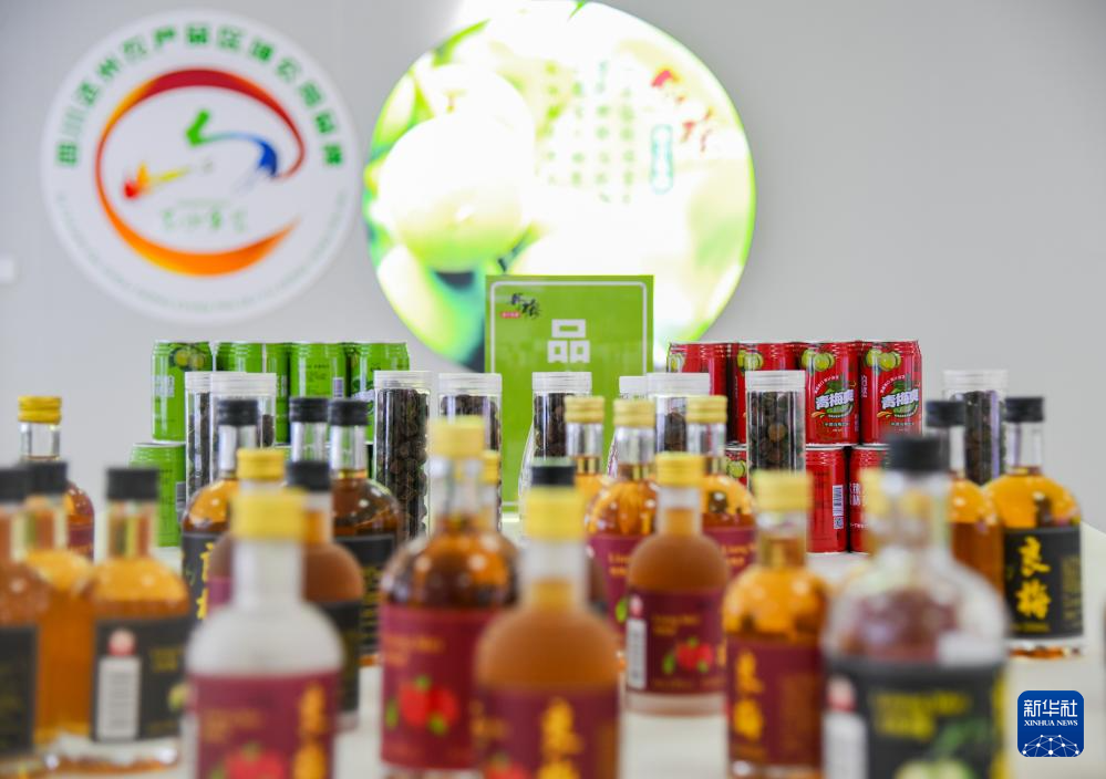 这是4月3日在四川省达州市达川区百节镇一家乌梅加工企业的展厅内拍摄相关产品。