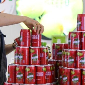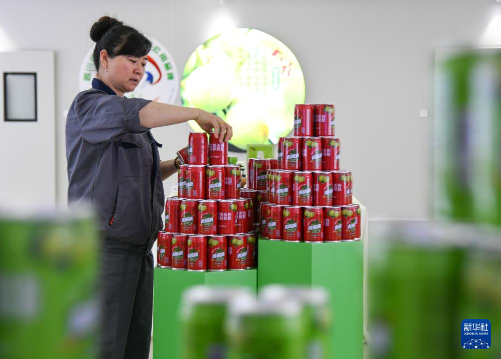 4月3日,在四川省达州市达川区百节镇,当地一家乌梅加工企业的员工在展厅摆放产品。