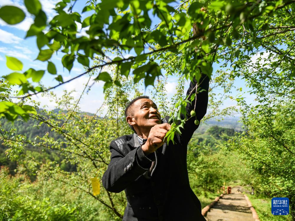 4月3日,在四川省达州市达川区百节镇,种植户在疏果。