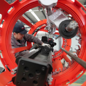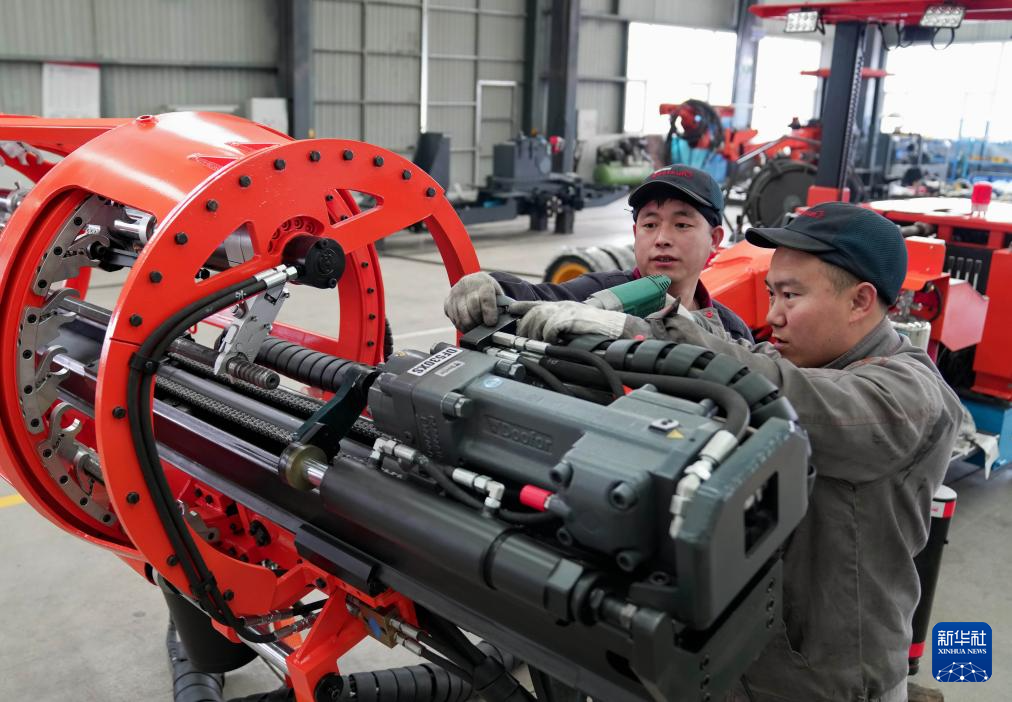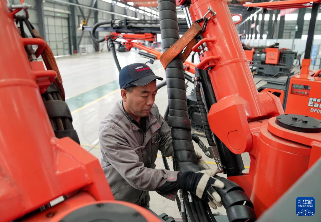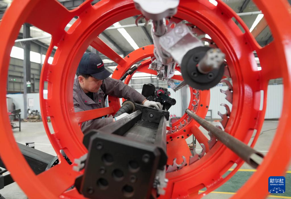 4月2日,工人在河北省昌黎县一家工程机械设备企业的生产车间工作。