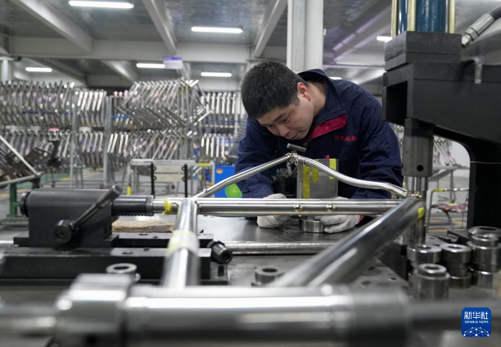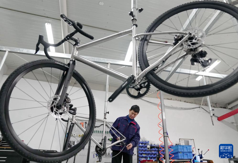 4月2日,工人在河北省昌黎县一家高档自行车企业的生产车间工作。